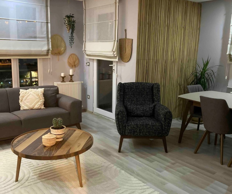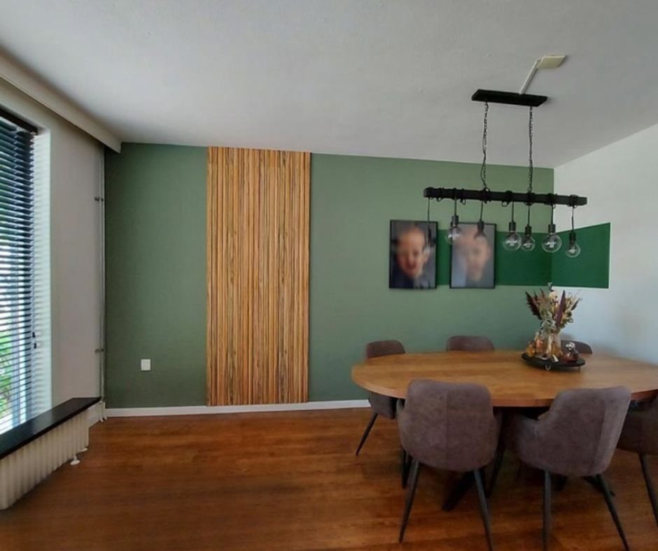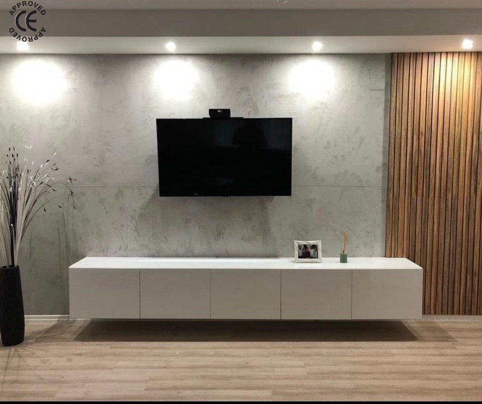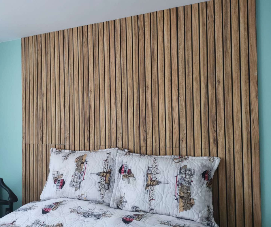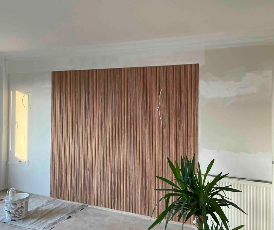Панелот има релјефна текстура што му дава модерен изглед на просторот,