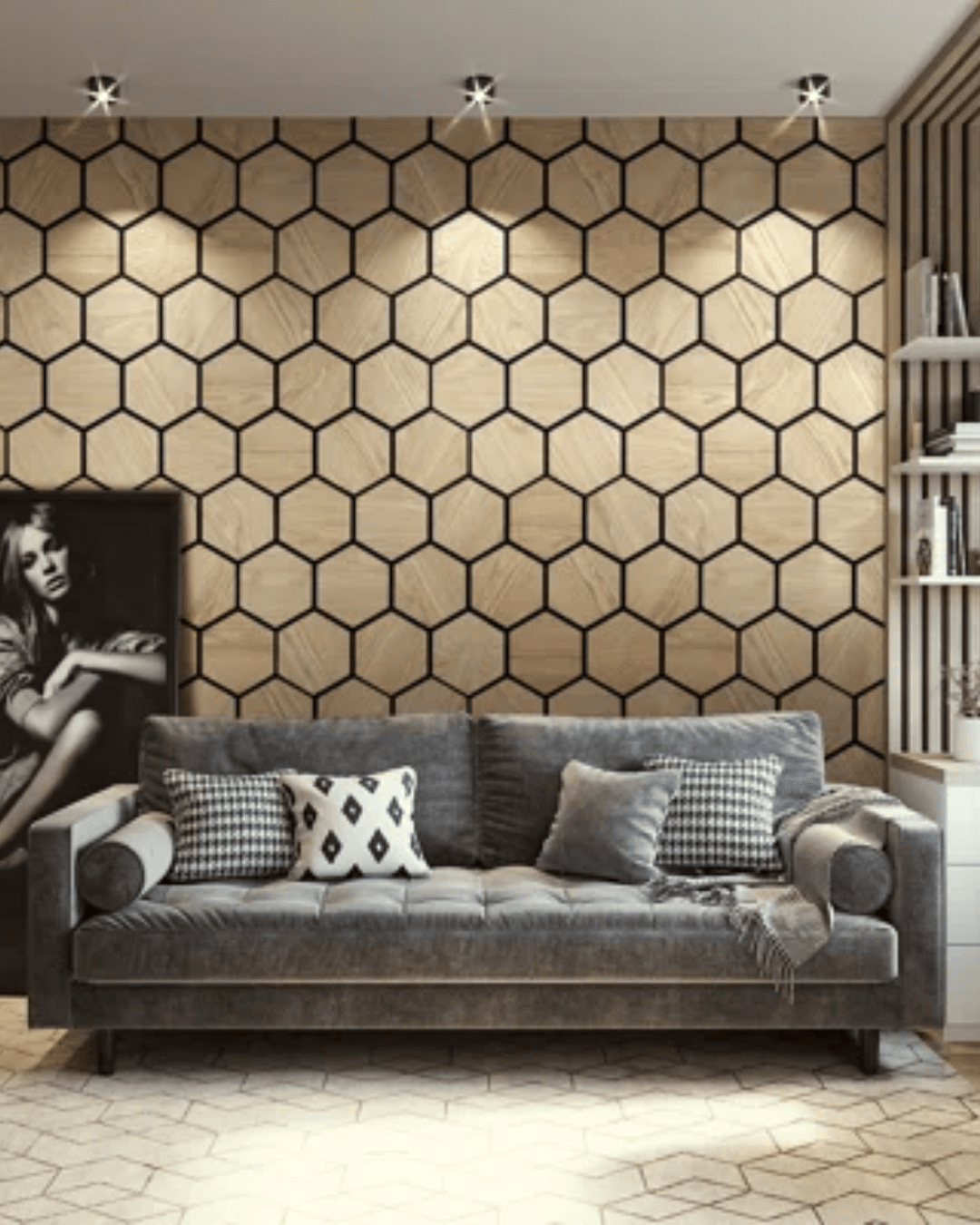 Позадината на панелот е од Филц и мадијапански декоративни шестоаголни форми